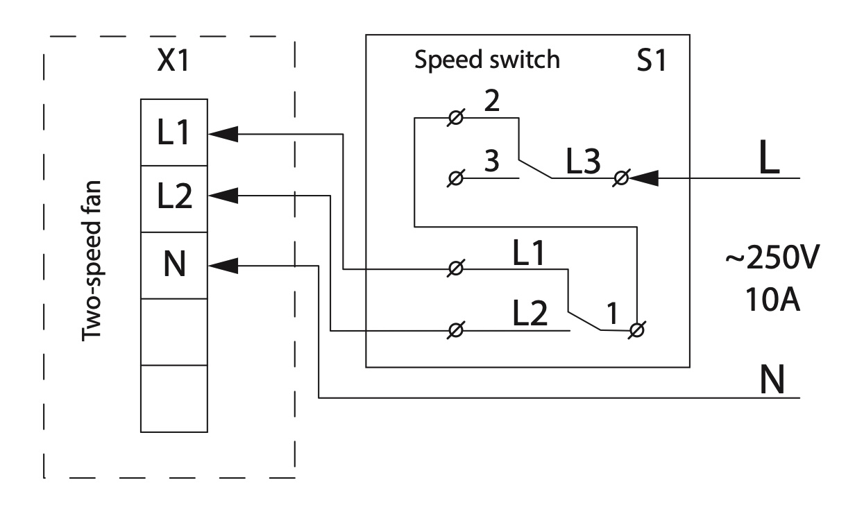 Prepínač rýchlosti otáčok je určený pre ventilátory, ktoré sú vybavené motormi s dvoma rýchlosťami. Môžu sa použiť aj na ovládanie iných výrobkov, ktoré majú viacrýchlostné motory. Je vybavený nulovou polohou na obidvoch stranách, čo umožňuje jednoduché ovládanie a okamžité spustenie ventilátora na požadovanú rýchlosť. Sú určené na montáž do bežnej inštalačnej krabice, napr. KO 68.